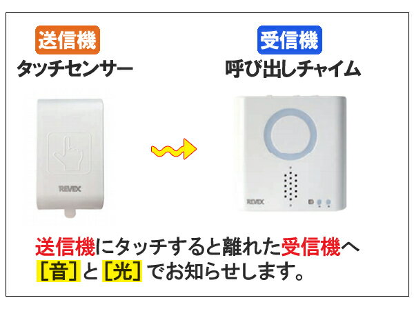 ■商品特長 ~ご自宅や介護などの呼び出しに~ 送信機にタッチすると離れた場所へ「音」と「光」でお知らせします。