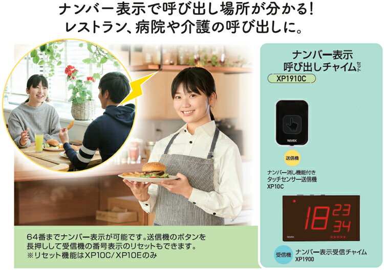 REVEX ワイヤレスチャイム XPシリーズ 送信機・受信機セット ワイヤレスタッチセンサーナンバー表示呼び出しチャイムセット XP1910C 当商品は下記の送受信機のセットです。