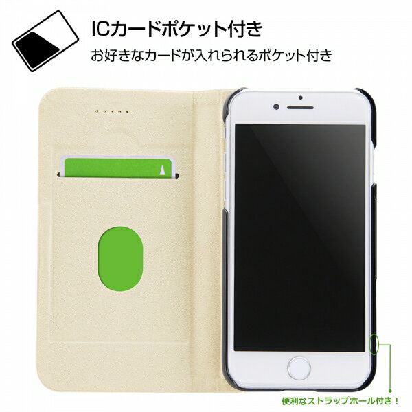 表面に『ディズニーキャラクター』のデザインがプリントされたスマートで使いやすいiPhone SE(第2世代)/8/7用手帳型ケースマグネットタイプ。