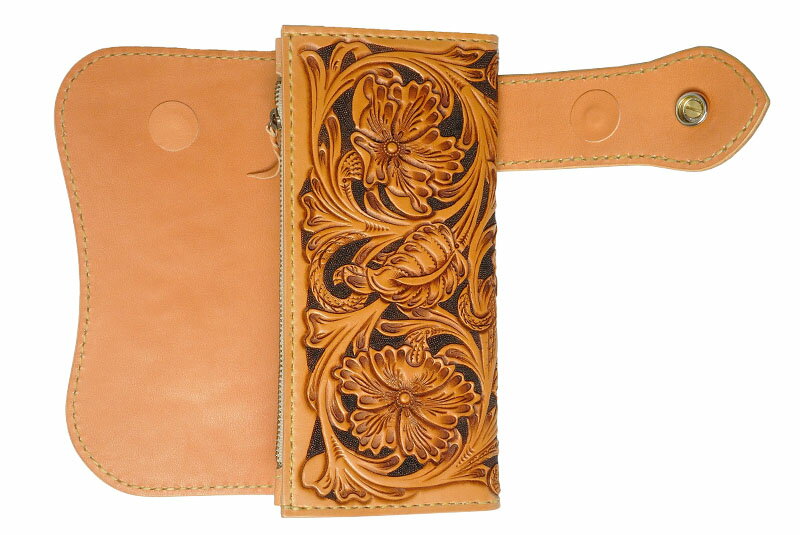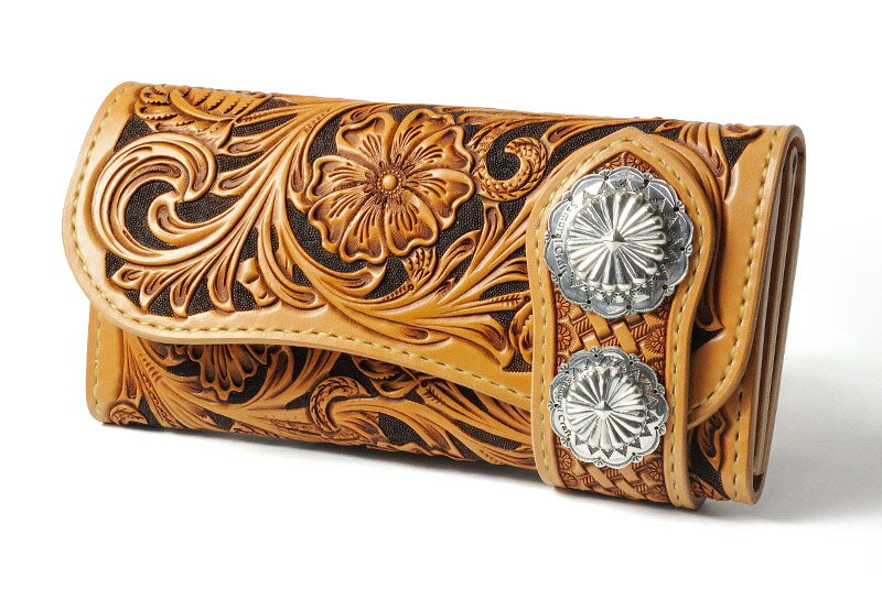ギフト対応 ■品名:三つ折りロングウォレット [B-3] ■素材:ツーリングレザー ■サイズ:195×95×30mm ■サンプルコンチョ:SW-302(38mm)/SW-303(31mm) ■仕様: カード入れ×16 札入れ(マチ無)×2 札入れ(マチ有)×2 小銭入れ×1 規格外カードポケット×2 ※シニューによる完全手縫い仕上げ。