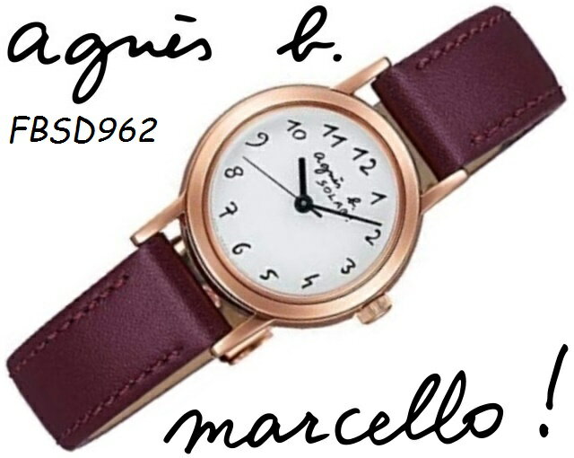 [新品!正規品/日本全国送料無料]agnes b/アニエスベー marcello!/マルチェロ SOLAR レディースソーラー ステンレス 丸型 10気圧防水 カーフバンド ピンクゴールド×ホワイト×バーガンディ 手書き風フォントアラビア数字 FBSD962[Cal:V117]